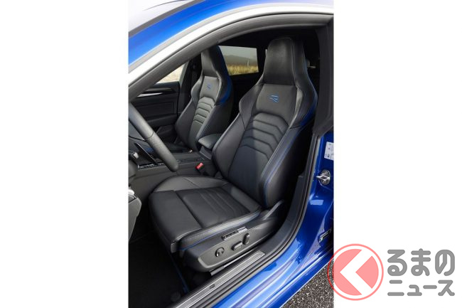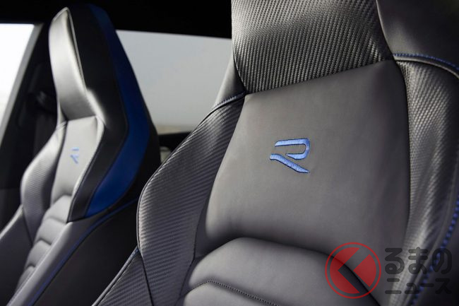 インテリアでは、フロントシートの背もたれにRロゴが付いたスポーツシートと、大型パドルシフトを備えたマルチファンクションステアリングホイールを標準装備。Rモデルらしくシートやアームレスト、本革ステアリングホイール、シフトレバーなどに青いステッチが入る。またオプションで、ヘッドレスト一体型バケットタイプのフロントシートが用意される。