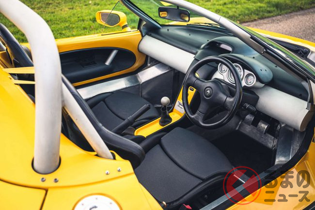 パワートレインは、当時の「メガーヌ16V」に積まれた2000cc直列4気筒DOHC16バルブを、駆動系とともに横置きミッドシップに搭載したもの。シャシは角断面のアルミ押し出し材を溶接で組み上げたスペースフレームで、前後ダブルウイッシュボーン式のサスペンションはフォーミュラマシンさながらのプッシュロッド方式を採用するなど、本格的な作りを身上とした。
