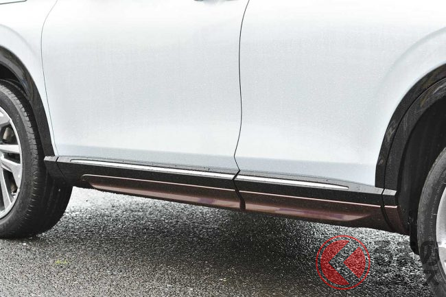 力強い表情のフロントグリルに加え、ボディカラー&クロームメッキで加飾したフロントロアスカートやリアロアガーニッシュ、ボディ同色でまとめたリアロアスカートとサイドガーニッシュのほか、リアコンビガーニッシュでクーペスタイルをさらに強調しました。