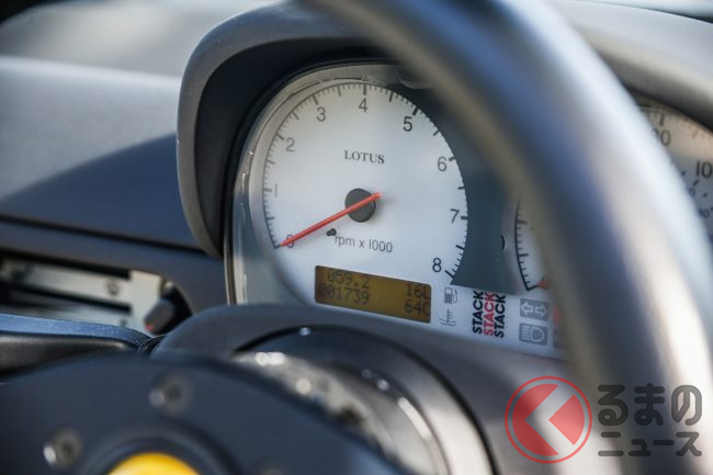 それもそのはず。なんとこの1997年型のエリーゼ、約24年間でわずか1739マイル(約2800km)しか走っていない! 4人のオーナーによって大切に大切に受け継がれてきた、ある意味四半世紀近く前からタイムマシンに乗ってきたような1台なのである。