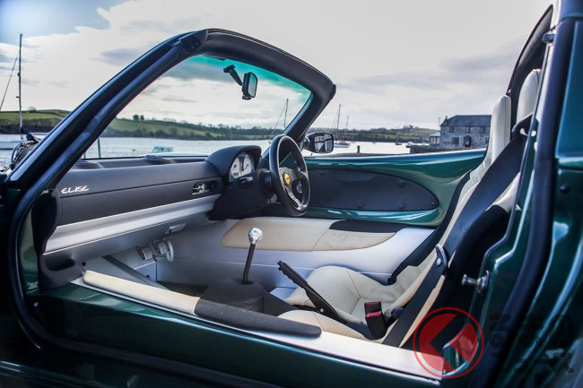 初代エリーゼは1995年のフランクフルト・モーターショーでデビューし、翌1996年6月から生産を開始。2000年11月にフェーズ2に切り替わるまでの約4年間生産されたが、出品車両はそのごく初期の、1997年2月−9月の生産車両であることが、シャシ・ナンバーから分かる。資料から変遷を辿ると、スターター・モーターのアップデートおよび、エンジン・マネジメント・フューズのリコール対策後のモデルのようだ。