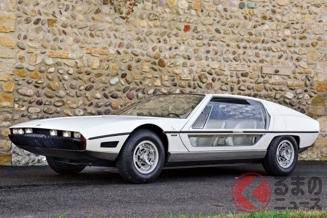 当初は、真剣に大型ガルウイングの実用化も検討されたようだ。さすがに直列6気筒エンジン・リア横置きレイアウトは早々に諦められ、フロントに12気筒を押し込んだ、当時のランボルギーニとしては“常識的”なパッケージを採用したガルウイングのエクスペリメンタルカーがテストに供されていた。ジャン・パオロ・ダッラーラがエンジニアリングを担当した、その後の「エスパーダ」である。もちろん、スタイリングbyマルチェロ・ガンディーニだ。
