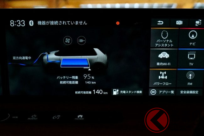 参考までに、ホンダeは451万円から。V2H機器はニチコンのモデルで、基本機能のみのスタンダードモデルが施工費別で約43万円から、プレミアムモデルは約87万円からです。ただし補助金が付くといいます。