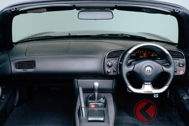 一方で、S2000のソフトトップは重量的には不利になる電動式をあえて採用。頭上のロックこそ手動でしたが、スイッチを操作すればわずか6秒ほどで手軽にオープンエアを楽しむことができるというのは、オープンカーとしては大いに魅力的でした。
