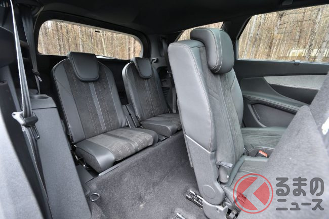 ただし横幅はそれなりでも、全長は4640mmとミドルサイズSUVのなかでもそれほど大きくないサイズで、そのうえで大きな不満もなく使える3列シートを実現している点が特筆できる。