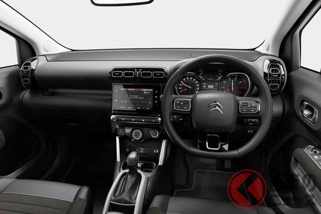 C3エアクロスSUVは全長4160mm×全幅1765mm×全高1630mm、ホイールベース2605mmというサイズで、車両重量は1290kg。EAT6(6速AT)が組み合わされ、前輪を駆動する。