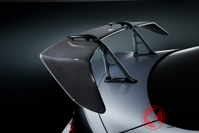 BRZの大人なイメージをガラッと変えるレーシーな雰囲気に加えて、ダウンフォース向上によるリアの安定感を実現するようですが、明らかにノーマルではオーバースペック。