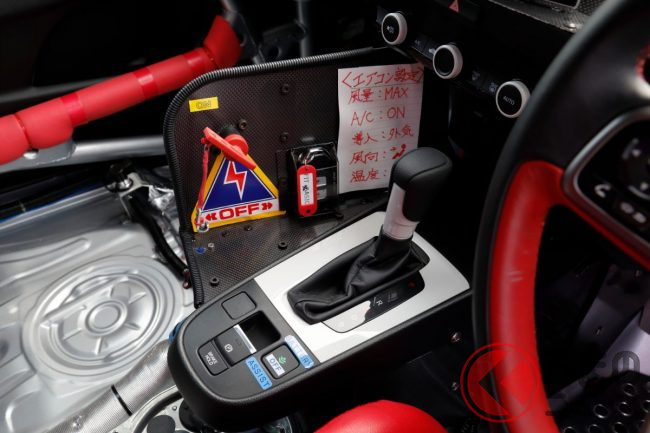 ノーマルはシステムの都合(アクセルON→発電エンジン始動→モーターに電力供給→駆動)でアクセルを踏み込んでもタイムラグが出てしまいますが、JOY耐仕様は前出のようなソフト変更で常に駆動のスタンバイが出来ているので、アクセルを踏んだ瞬間にパワーが路面に伝わります。