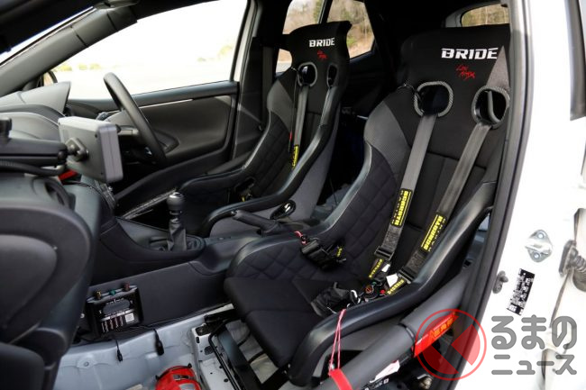 インテリアはノーマルの面影は残りますが、不必要な装備が取り外されロールケージの追加、フルバケットシートの装着などによりレーシングカーしています。