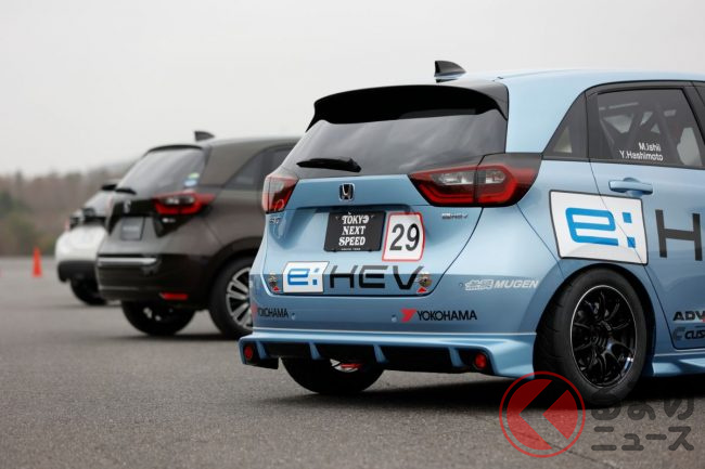 実は筆者もゲストドライバーで参戦したこともあります。このマシンのコンセプトは「公道走行を主軸に開発したe:HEVをクローズドサーキット環境で鍛え、走る愉しさとポテンシャルを最大限に引き出す」です。