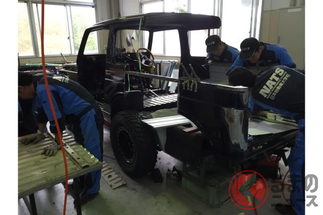 このようなモンスターSUVといえるG63 AMG 6×6のエッセンスを取り入れたジムニーを制作したのは、自動車専門学校の日本自動車大学校(通称:NATS)です。