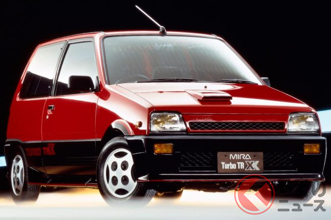 1985年には3気筒エンジンのダイハツ2代目「ミラ」に、「ターボTR-XX」を追加ラインナップ。エンジンはキャブレターターボで、最高出力50馬力を発揮。