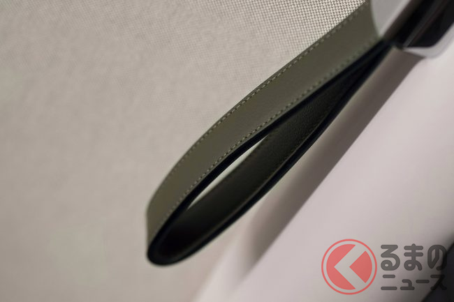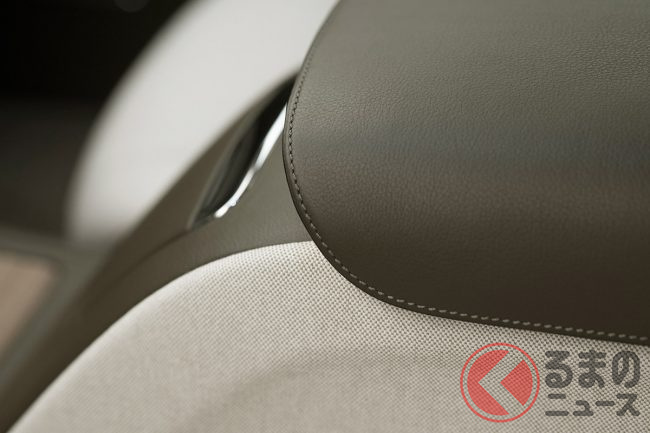 後部座席用ヘッドレストのクッション部分やカーフ・サポートには、繊細なエルメスのパイピングが施され、柔らかなシーシェル・ホワイトのアクセントと、色を合わせたラム・ウール製フロア・マットが、全体として明るく広々とした印象をもたらしている。
