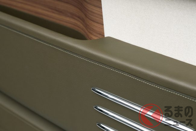 インテリアは主として「エルメス・エネア・グリーン・レザー」で仕上げられた。この素材はステアリング・ホイール、ダッチェス・ストラップというグラブ・ハンドル、ギア・セレクター、クライメート・コントロール設定用のロータリー・コントローラーなど、カスタマーが直接触れる細部に採用されている。