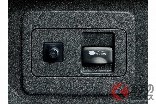 安全・安心に関する装備では、停電などの非常時に給電できるアクセサリーコンセント(AC100V・1500W/コンセント1個)を全車にオプション設定。