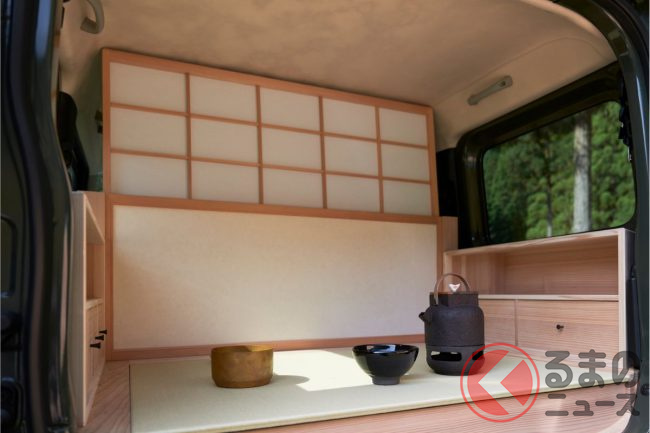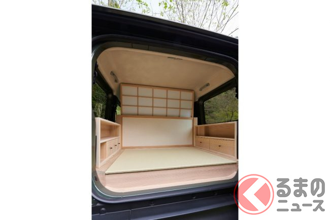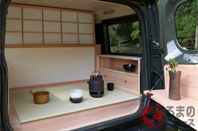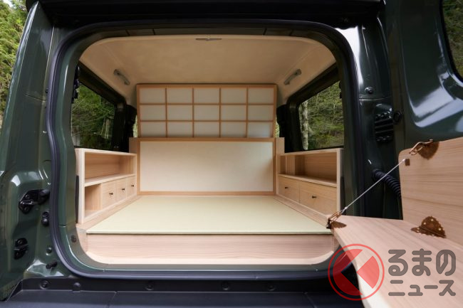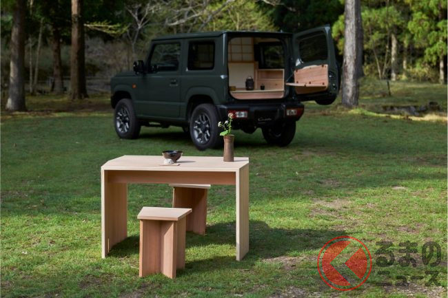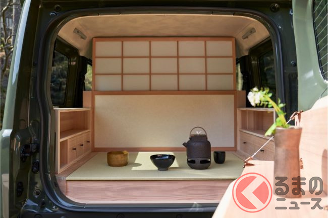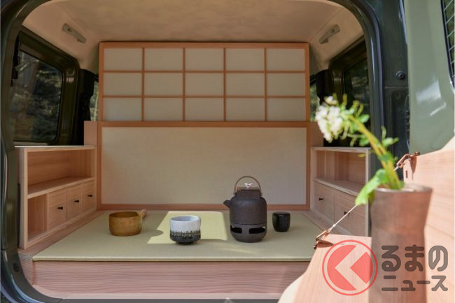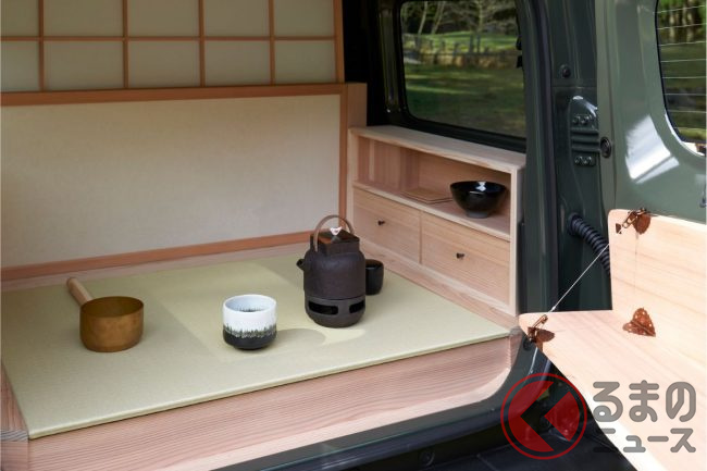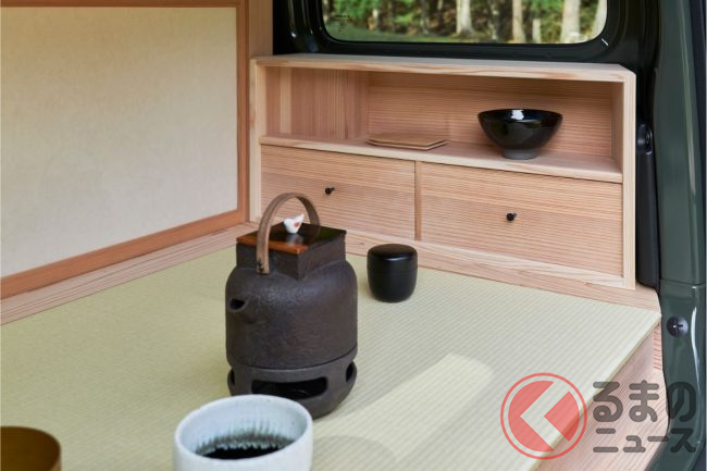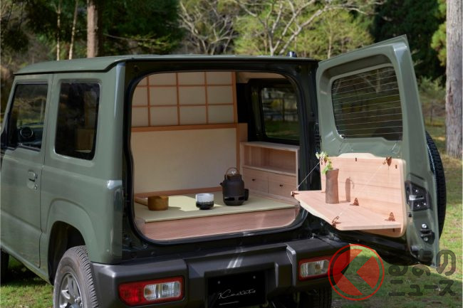 スズキ「ジムニー」といえば高い悪路走破性を誇るアクティブなイメージを持つクルマですが、日本古来の「侘び寂び」を感じられる静的な茶室が誂えられた仕様が登場しました。