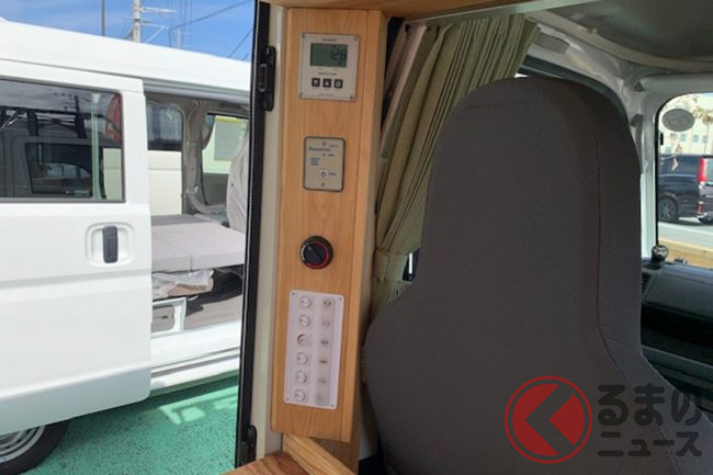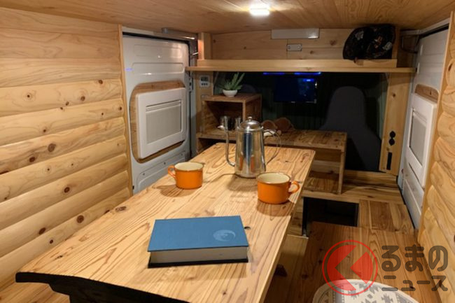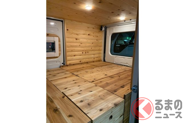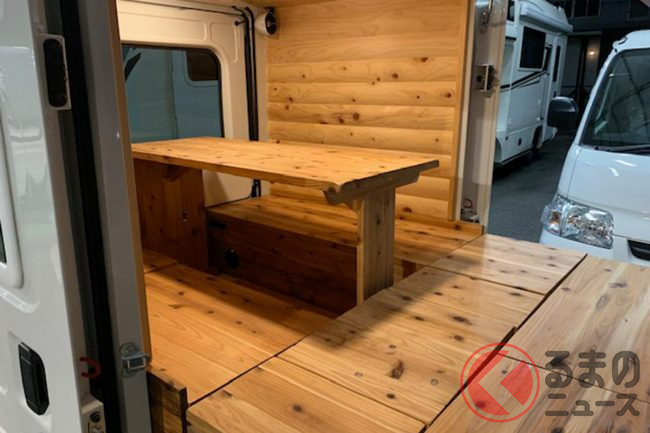 軽のキャブコンと比べると室内空間は狭くなりますが、元々ある車体の一部を改造するため、新しいシェルを載せるキャブコンより安価に済むという利点があります。