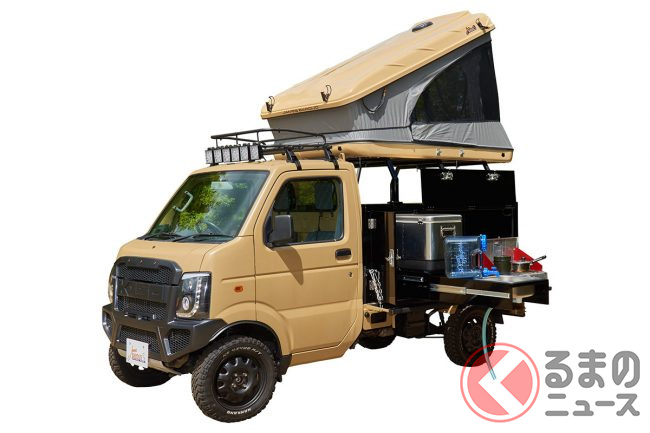 軽トラックの荷台に新たな箱を載せて、さらにその上にルーフテントを装着したモデルも登場しました。