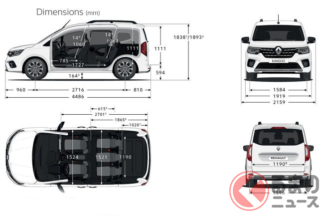 新型カングーは現行型よりも約90mm全幅が広くなった