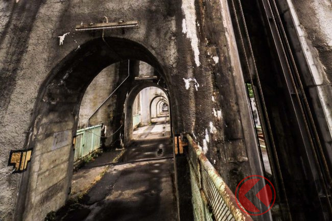 竣工後80年以上が経過しており、コンクリートの色やヒビのひとつひとつに歴史を感じつつ、いまでも発電用として現役の姿に惚れ惚れします。そこを貫く道路を無料で通行させていただけるだけで、有り難き幸せ。