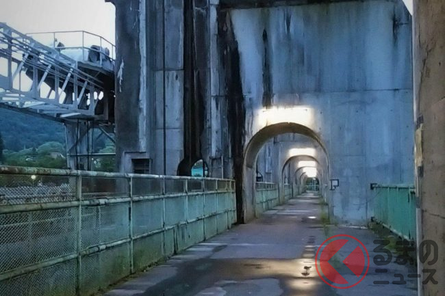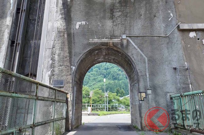 その規模の大きさから、ビジュアル的な迫力で人気の高い観光スポットではありますが、一番の特徴は道路がゲート支持コンクリート(堰柱)のなかを通る珍しい構造。ダムのなかを高さ2m、幅2.2m以内のクルマなら走行可能という点が、ドライブ好きの間でも人気となっているのです。