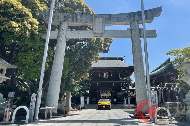 ほかにこの神社は日本一太い注連縄(しめなわ)や、鈴、太鼓もあるそうですが、おそらくここが選ばれた最大の理由は、ここに牛の像が鎮座されているからかも。牛は、ランボルギーニの紋章であり、ランボルギーニのクルマの名前は闘牛の名前由来が多いので。また、これからの道中の安全祈願ということもあるのかもしれません。