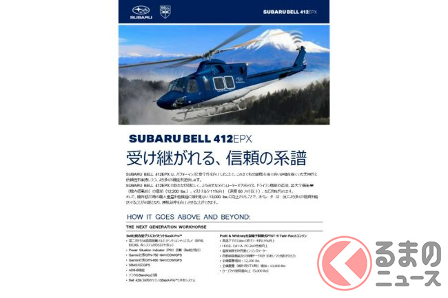 しかし、警察組織に納入されているのは、パトカーだけではありません。スバル製の新型ヘリコプター「SUBARU BELL 412EPX」(以下、412EPX)も納入が開始されました。