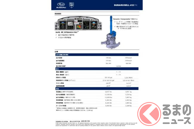 412EPXは、スバルが米国ベル・テキストロン社と共同開発をおこなった412シリーズの最新型ヘリコプターです。