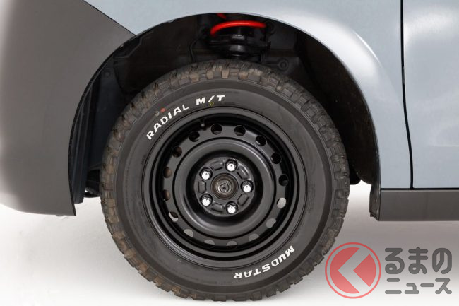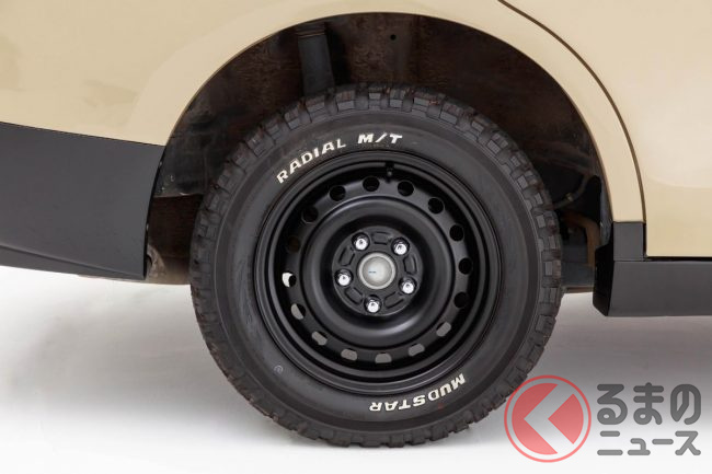 そして定番のホワイトレタータイヤとスチールホイールの組み合わせで、アウトドアに似合うシンプルVANに変貌させました」