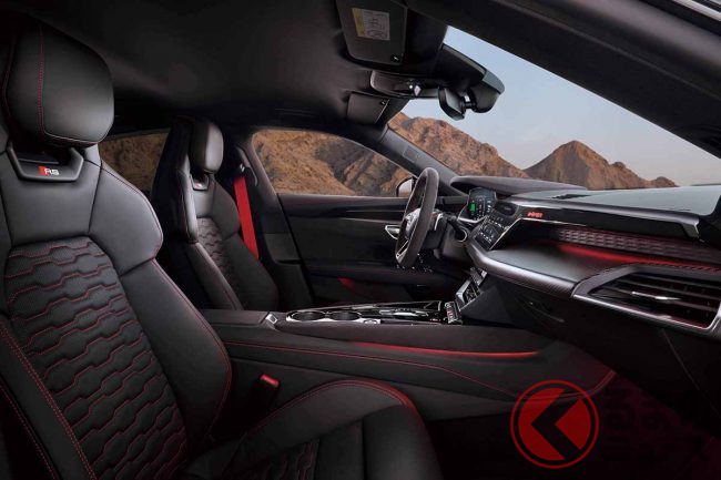 前後アクスルに配置されたふたつの電気モーターのシステム最大出力は、e-tron GTが350kW(約476ps)、RS e-tron GTが440kW(約598ps)で、ローンチコントロール仕様時は390kW(約530ps)と475kW(約645ps)を発生。 最大トルクはそれぞれ640Nmと830Nmになる。