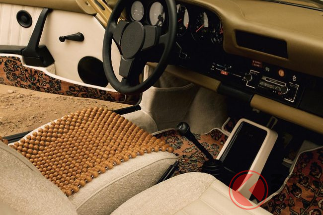 そうサンティス氏がコメントしているように、インテリアは東洋と近いギリシャをイメージさせるものとなっている。たとえば、フロアマットとして使われているのはペルシャ絨毯。また、オリジナル製作されたレカロシートには、木製ビーズ製シートカバーがセットされている。