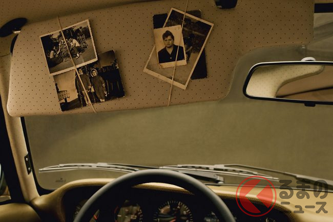 もちろん、内装はシートも含めて、すべてレザーとブークレによって張り替えられている。レザーオンリーではなく、ループ状の糸が表面に出るように織られたブークレを使うことで、あたたかみが演出されているところにも注目したい。そのあたたかみという部分でいえば、サンバイザーに挟まれた家族写真もそう。これはファミリーを意識させるキーポイントともいえるだろう。