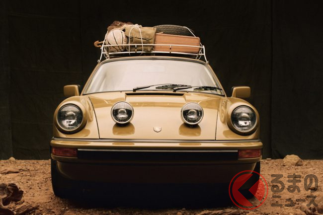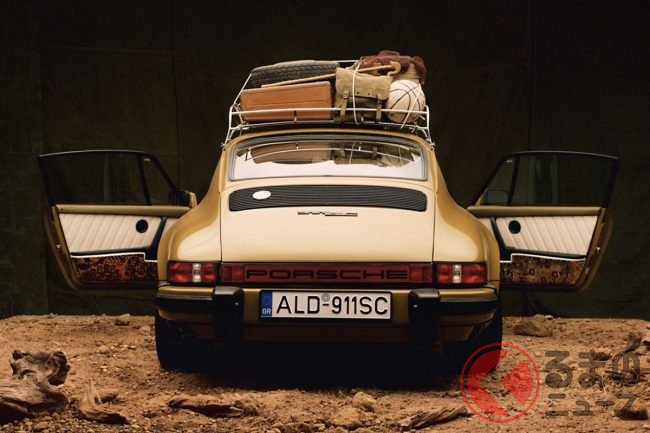 エクステリアに目を移すと、ボディカラーはポルシェのクラシックカラーであるオリーブを採用。ボンネット上には補助灯を装備し、ルーフには家族旅行の荷物が積めるルーフラックをセットしている。