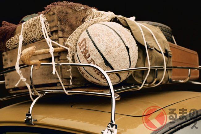 そこに積まれているのは、革製のトランクやキャンバス製バッグ、スペアタイヤ、バスケットボールなど。これもファミリーを意識させるアイテムだ。ホイールはフックス製を採用している。