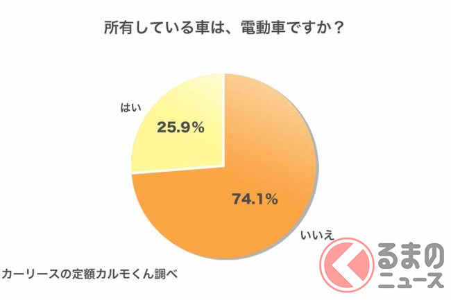 調査のなかで「所有している車は、電動車ですか?」という質問では、「はい」が25.9%、「いいえ」が74.1%でした。