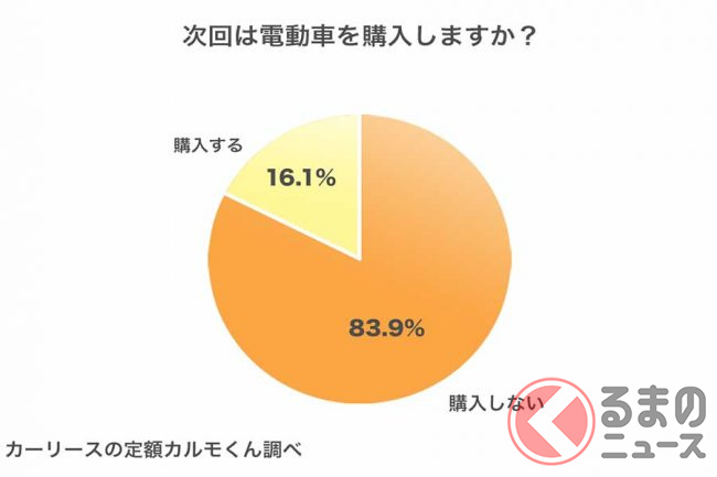 この質問で「いいえ」を回答した人に「次回は電動車を購入しますか?」と質問したところ、「購入する」は16.1%、「購入しない」は83.9%でした。