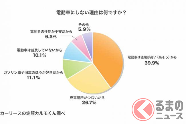 一方、次回は電動車を「購入しない」と回答した人にその理由を聞いたところ、「電動車は値段が高い(高そう)から」が39.9%でトップに。