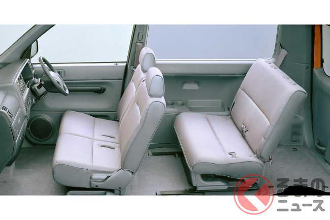 外観デザインは流行のミニバンをコンパクトにしたようなフォルムで、短いボンネットとボクシーなキャビンを採用。ドアは左側が2ドア、右側が1ドアと左右非対称のレイアウトで、後席の乗員が車道側に出ることがないように配慮されていました。