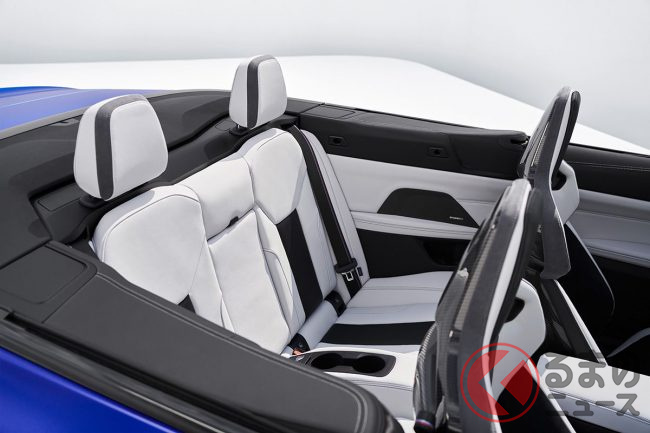 また、ソフトトップは電動で約18秒で開閉可能で、低速ならば走行中にも開閉できる。さらに、M専用デザインの大型縦型キドニーグリルや、エンジンとブレーキ用の大型冷却エアインテーク、力強い輪郭のホイールアーチや特徴的なMサイドギルなど、Mエクステリアの特徴を備えている。