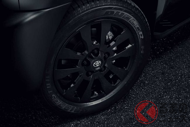 さらに、5本スポークの17インチアルミホイール(4WD仕様では15インチ)ブラックとなり、足元の印象を引き締めています。