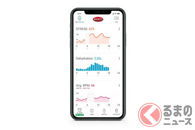 ブガッティからスマートウォッチが誕生した。ヘルスメーターとしてだけでなく、サーキットでの計測にも使えるため、サンデーレーサーにも注目の1本だ。