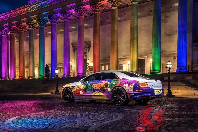 「あらゆる種類の多様性を称えるアートワークをフライングスパーに描く」という課題がベントレーデザインチームに与えられ、その難題に取り組んだのがデザイナーのリッチ・モリス氏であった。彼は趣味で絵画や彫刻を楽しみ、多様性のシンボルとして用いられる9色のプログレスフラッグをデザインに取り入れている。
