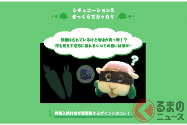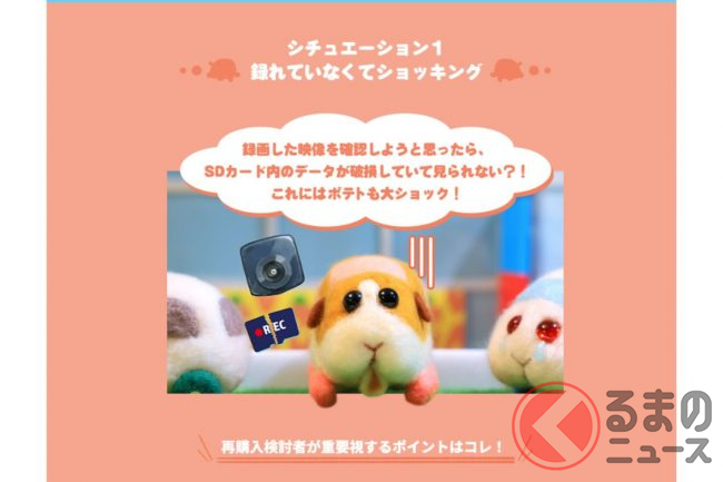 今回公開された「カロッツェリア」とのコラボページでは、「モルカー」が、ドライブレコーダー映像の画質や後方カメラがないことなど、使用時に起こりうるさまざまな失敗談を解説し、ドライブレコーダー選びで大事なポイントを教えてくれています。