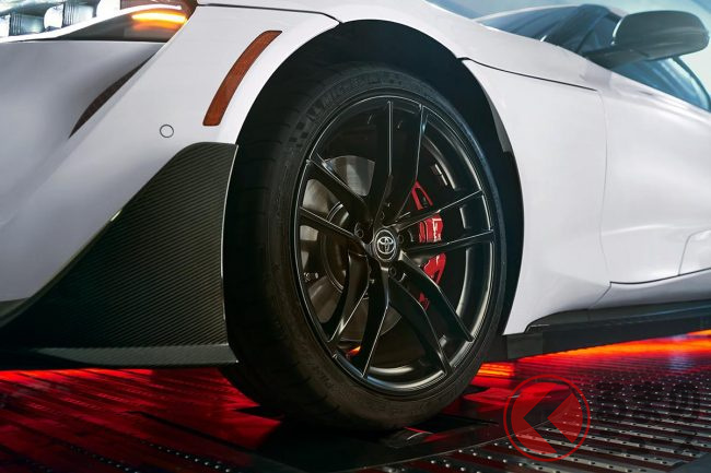 外装には新たにデザインされたカーボン製のカナード付きフロントスポイラー、サイドスポイラー、カナード付きのリアアンダースポイラー、そしてダックテール形状のリアスポイラーが装着され、スープラのボディをレーシーに演出。
