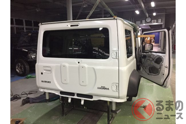 エクステリアは、現行ジムニーの顔面スワップをおこなっているほか、ジムニーシエラの特徴でもある強調されたオーバーフェンダーや、サイドステップがオフロード感を表現。