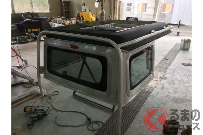 また、ドアは存在せず、ボディ後方をピックアップ化&ワンオフキャノピーしたことで、ラパンともジムニーとも異なるオリジナリティが表現されています。