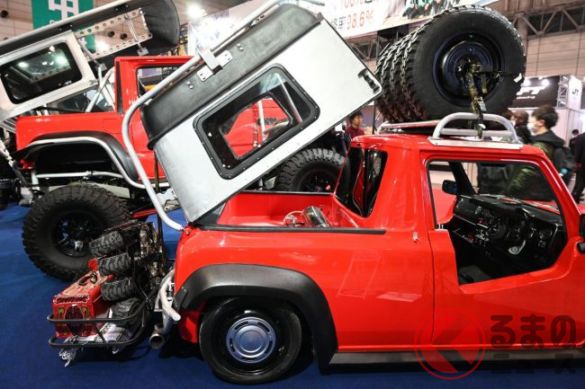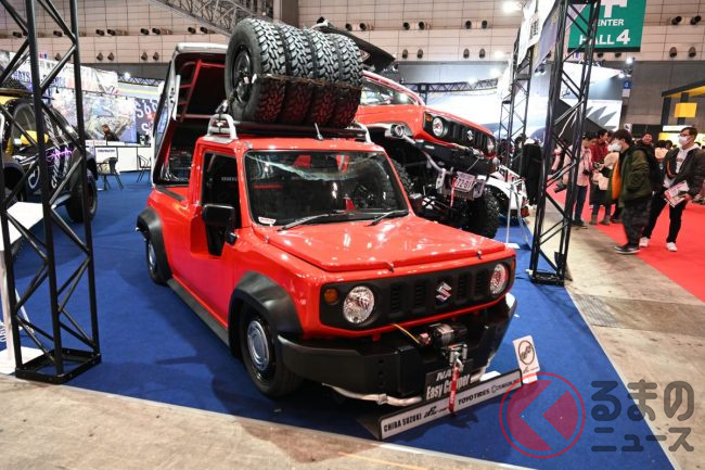 東京オートサロンにはさまざまなカスタムカーが出品されますが、「ジムニーピックアップ」のようなカスタムカーが存在しました。