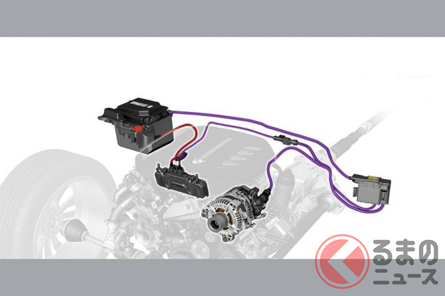 技術的な内容は、割合にシンプルである。そのシステムは、エンジンスターターと発電機を兼ねるスターター・ジェネレーターと、48Vの二次電池(リチウムイオン電池)、そして電圧を変化させるDC/DCコンバーターで構成されている。