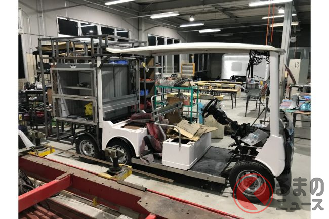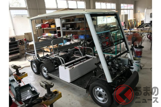 種車はゴルフカートのEV仕様であるため、走行モーターにDC48V(3kW)、バッテリーに100Ah/5HR×4個を使用することで、ゴルフでいう「1.5ラウンド分(27ホール)」を走ることが可能です。