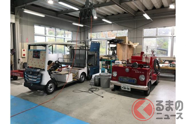 当時は、走行や放水が体験できたといいますが、現在では展示のみの状態になっていました。それが今回、株式会社ナリコーや自動車専門学校の日本自動車大学校(通称:NATS)によって、新たなちびっこ消防車の製作が実現したといいます。